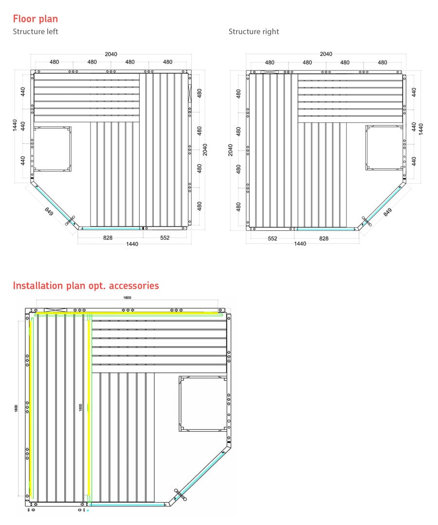 - Silicone cables for sauna heater (3m) and sauna light (3m).