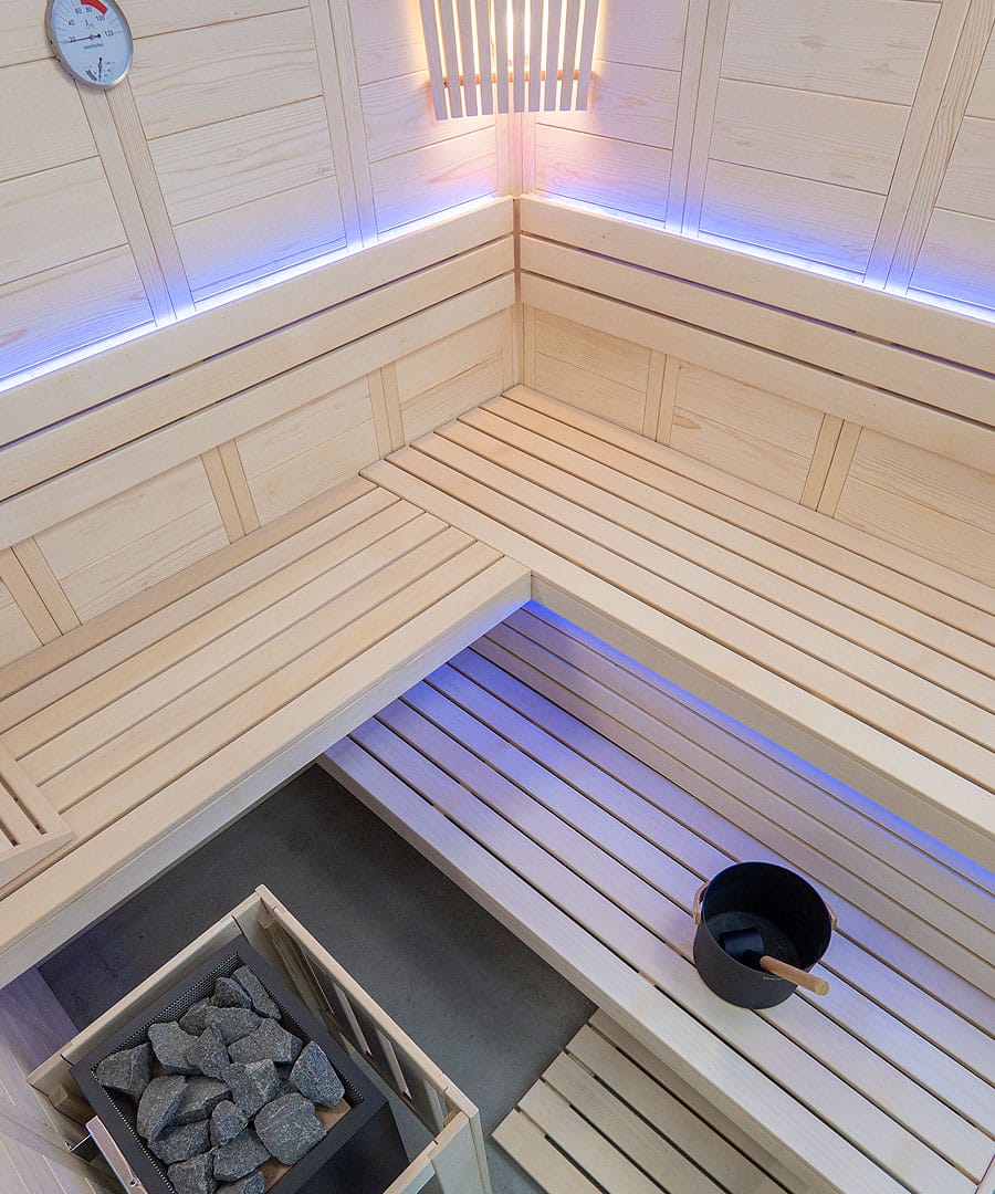 - Harvia ‘Prestige’ sauna interior in lime wood.