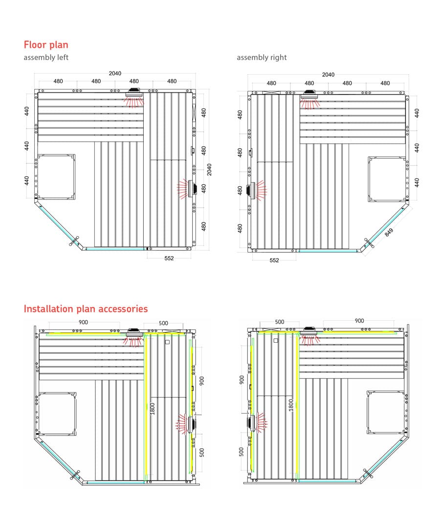 | Sauna heater | Optional. Minimum 7.5-9kW recommended. |