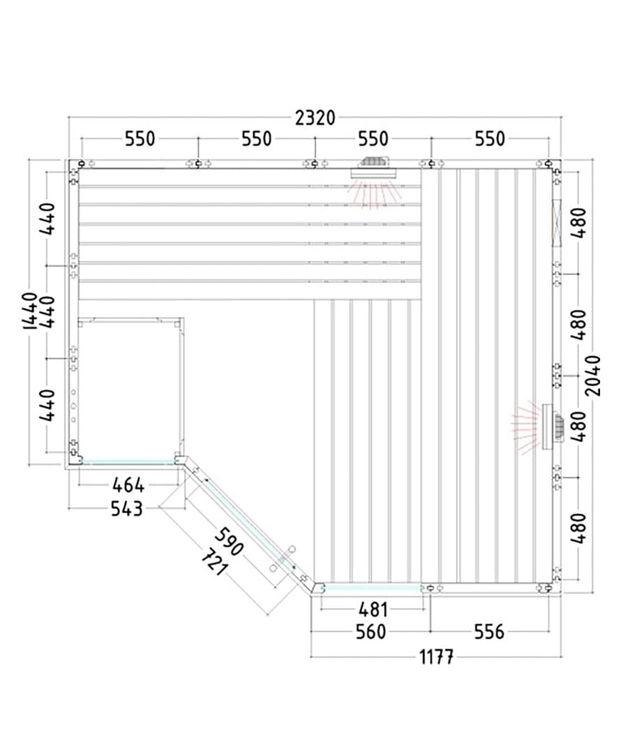 - Flexible installation: Mirrored assembly and left or right door hinging make it easier to fit the sauna cabin neatly into the existing room design.