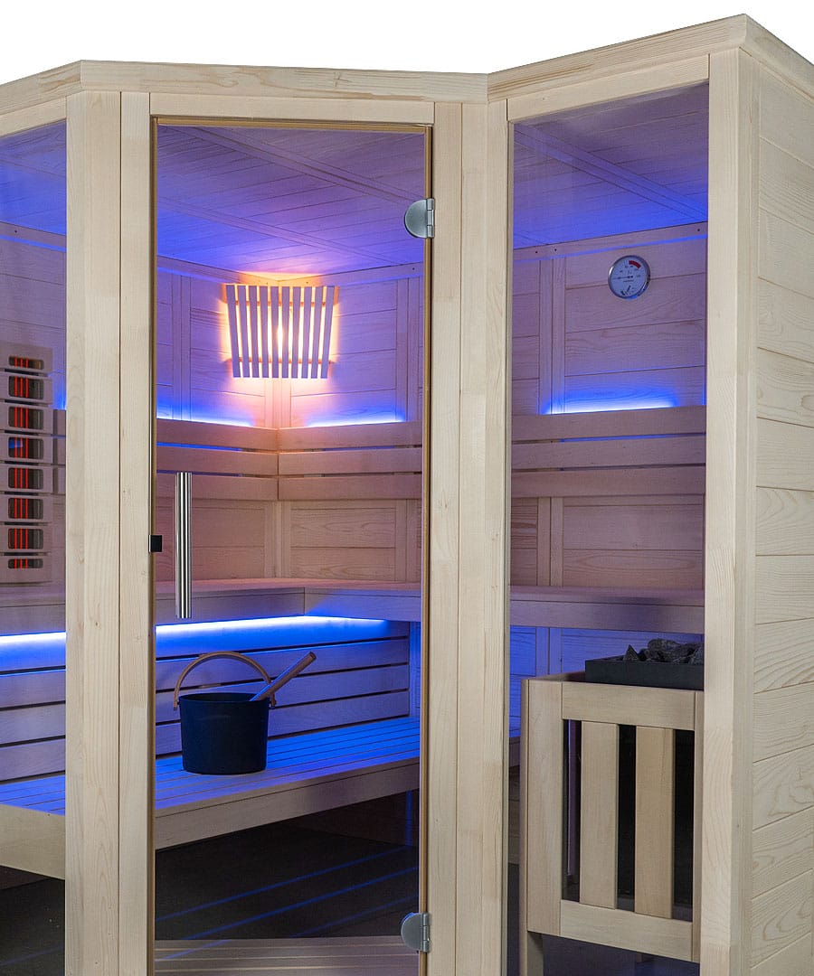 - Hybrid traditional and infrared: Enjoy the full ritual of a traditional sauna with the added benefit of integrated full-spectrum infrared heat.