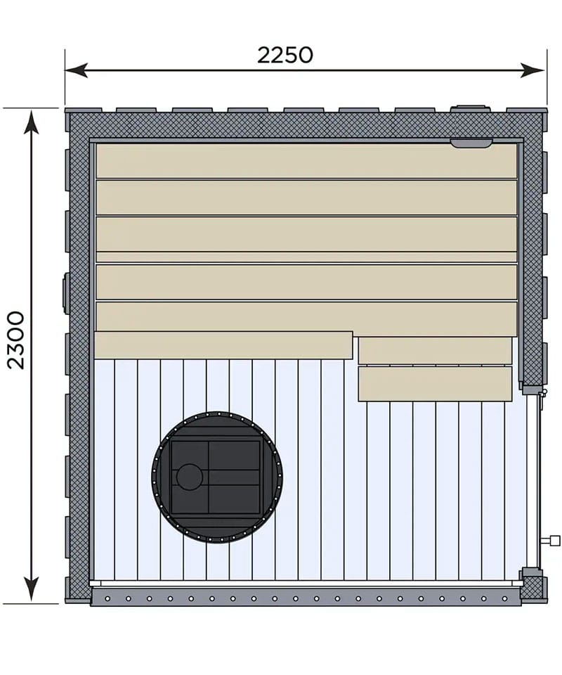 - Movable benches: Easily clean your sauna or re-arrange the layout with movable benches.