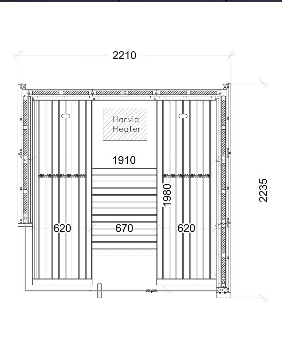 | Benches | 2 upper benches / 1 lower bench 620mm width. |