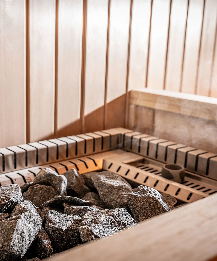 - Powerful sauna heater with integrated 3kW steam generator.