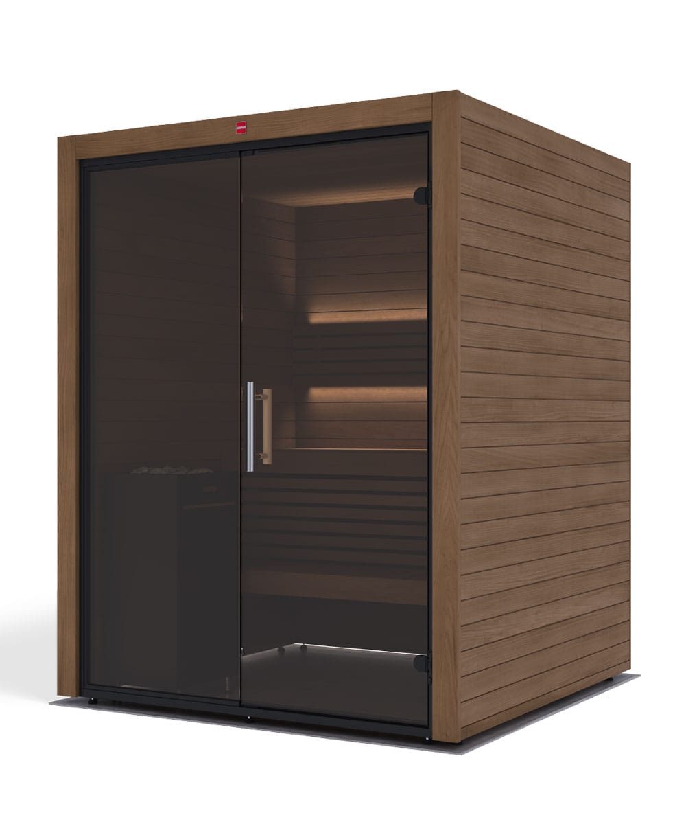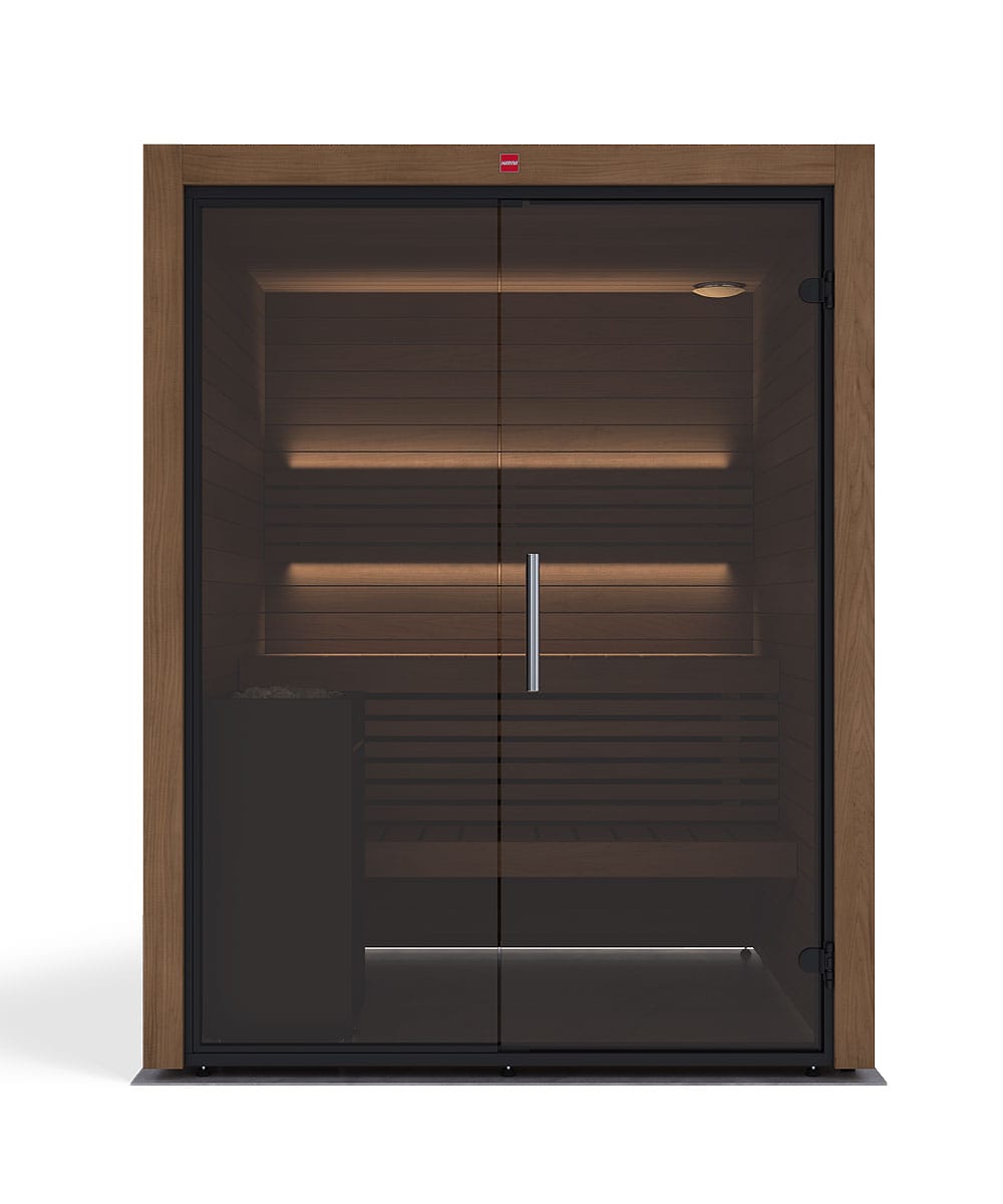 The glass front Harvia UTU Medium Vision offers spacious luxury, premium materials, and ultimate relaxation for three people.