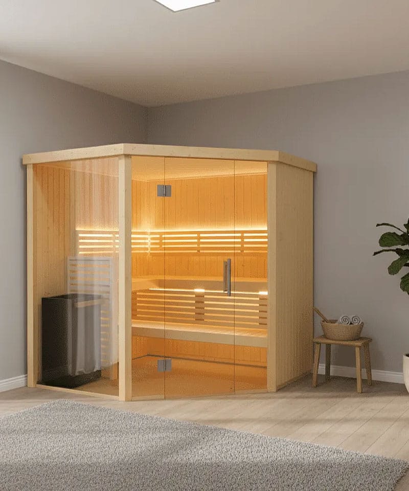 - Traditional sauna design – The Variant View Corner Large has a traditional, Finnish sauna design that will complement any home spa or wellness area.